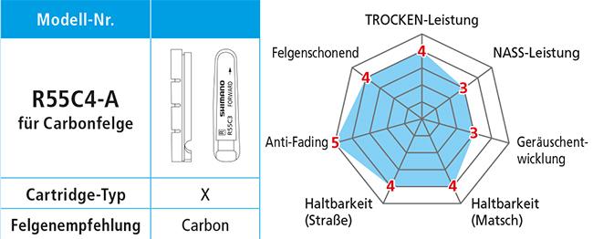 Shimano Bremsgummi R55C4-A -1mm für Carbonfelgen mit Befestigungsschraube Paar
